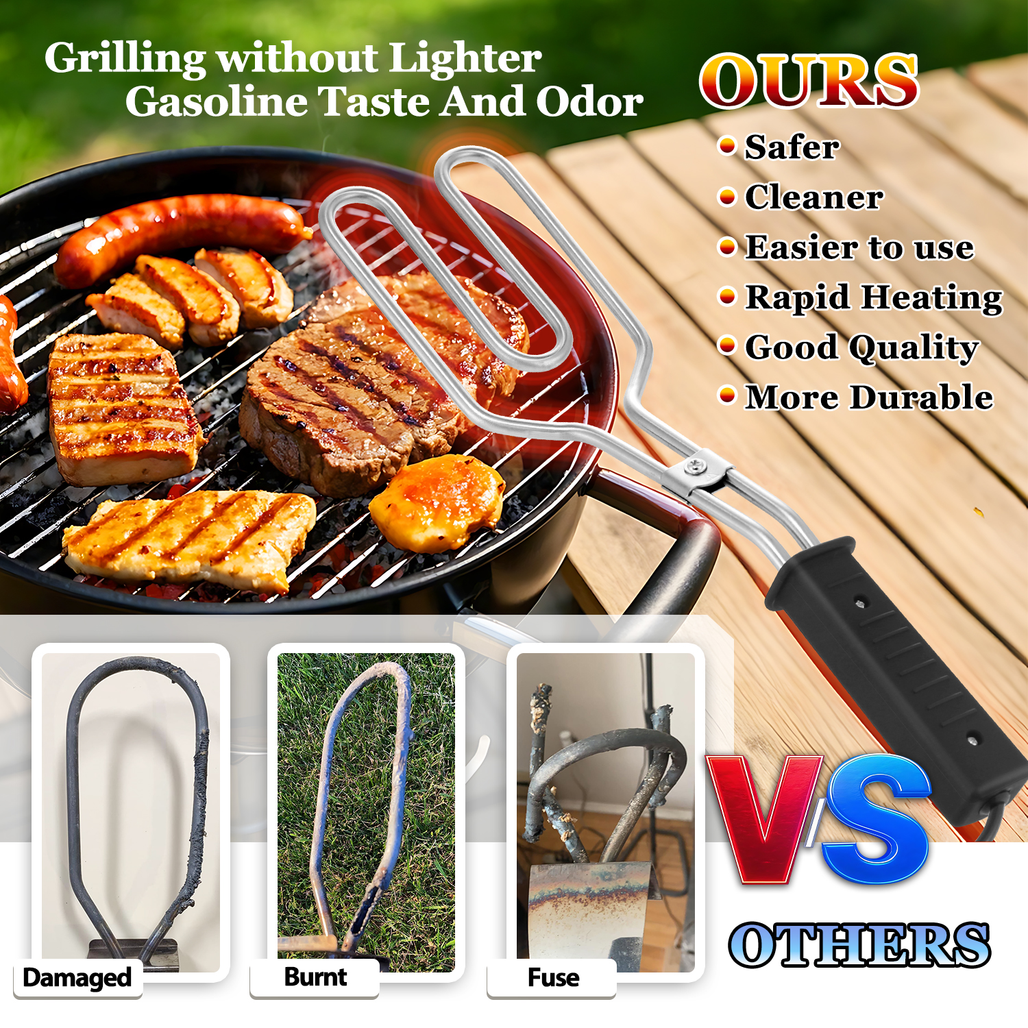 【Нетоксичный и без запаха】 Электрическая зажигалка для древесного угля разжигает огонь без дыма, запаха, токсичных добавок или химикатов. Сохраните себя и свою семью в безопасности и избавьтесь от привкуса жидкости